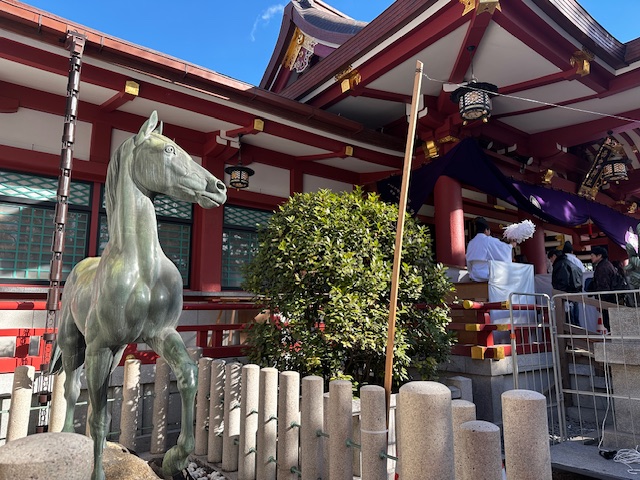 今年は午年ということで、青銅神馬像を撮影して、福笹を買ってきました。